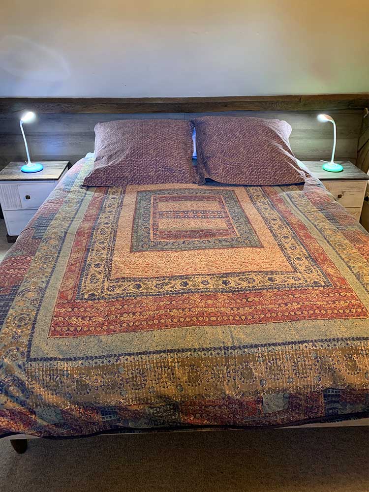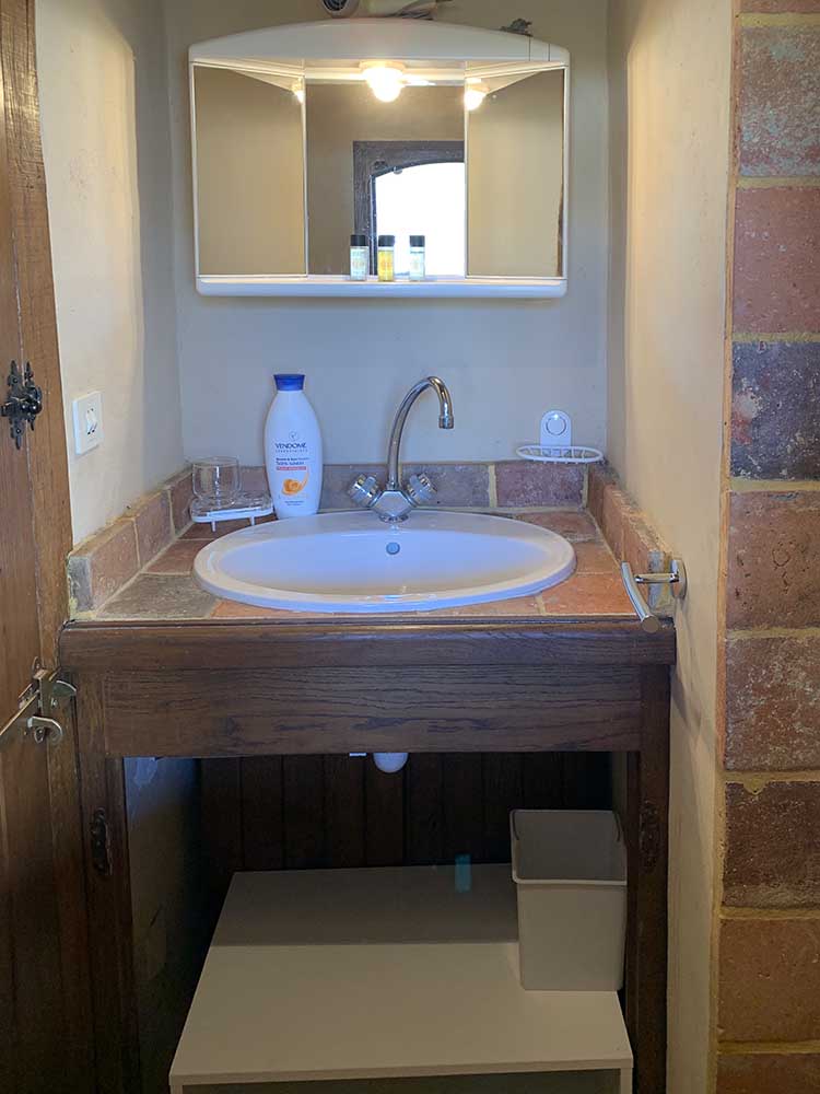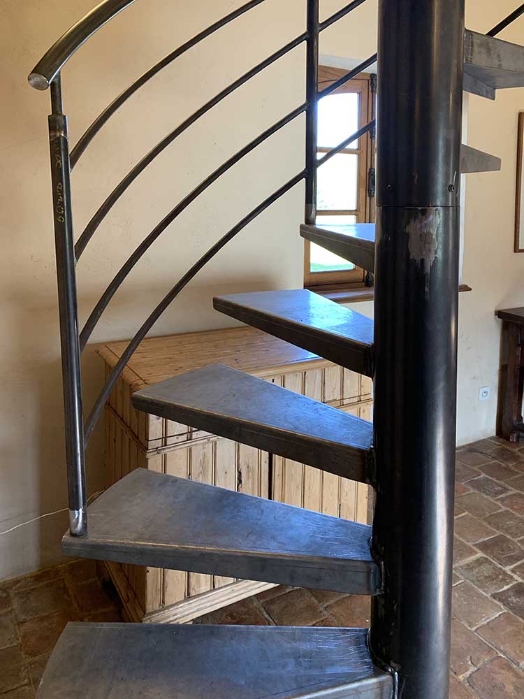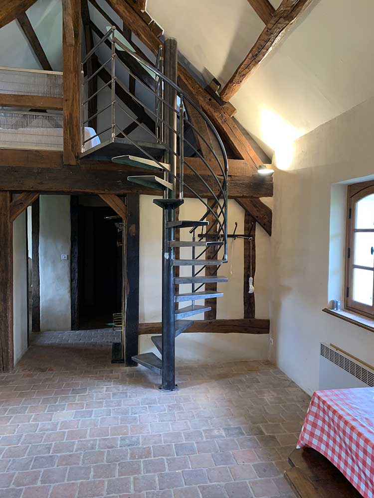 La chambre ouverte (1 lit 1,40 m) est en mezzanine accessible par un bel escalier métal en colimaçon.