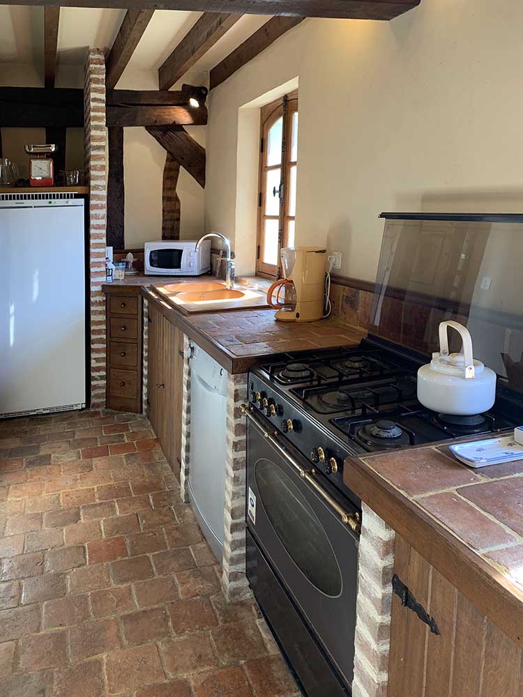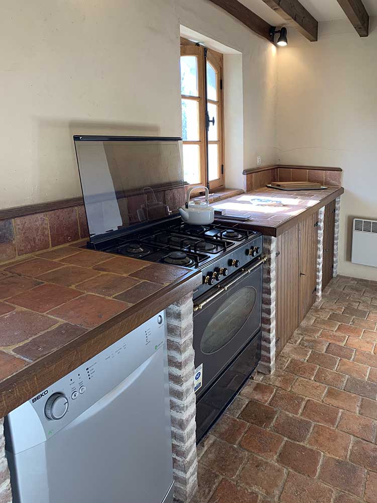 Maison individuelle, terrasse, jardin, cheminée (bois fourni), lave vaisselle, cuisinière à gaz, micro-onde, réfrigérateur, télévision, salon de jardin, parasol, barbecue.